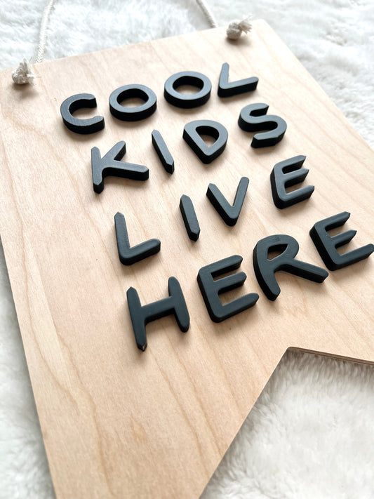 Cool Kids Live Here - Modern Boho Wooden Banner with Cotton Rope - Boho Wall Art