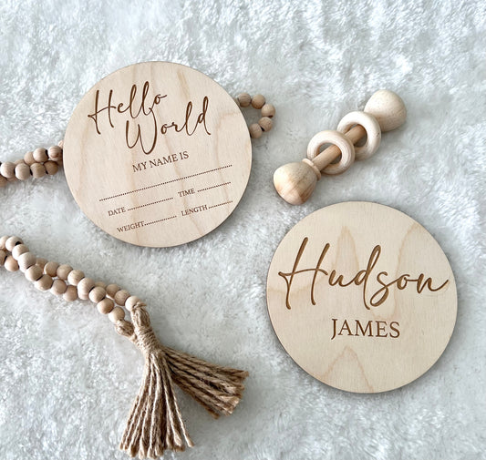 Birth Stats Sign with Name - Milestones Discs